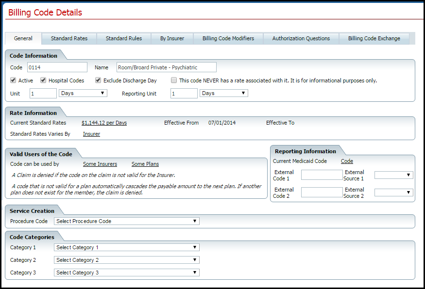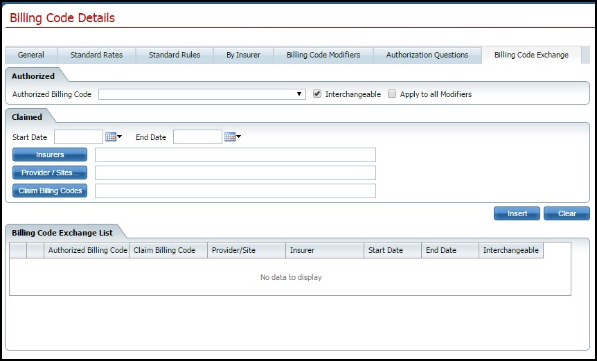 If needed click on the Billing Code Exchange tab to make it active. This tab is optional.